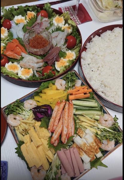 私の母が毎年作ってくれていた手巻き寿司を、結婚してからは私が作って 家族と一緒に食べてお祝いしています。