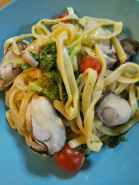子どもから母の日にと牡蠣が届いたので、牡蠣パスタを作りました。