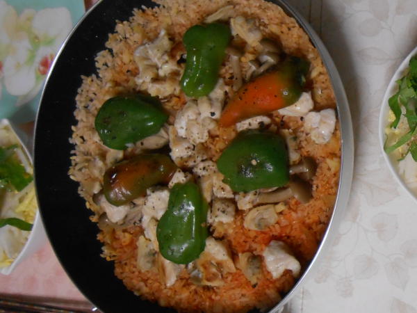 スペインが好きでスペイン語を習っていた母に、フライパンでパエリアを作りました