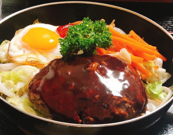 家族みんなが好きなデミグラスハンバーグ♥️目玉焼きと野菜炒めを添えてボリュームたっぷり!