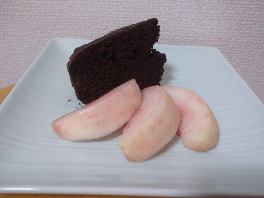 母の好きなチョコレートケーキを焼きました。カットせずホールごとプレゼントしたら、自分で盛り付けて楽しんだようで、この写真が送られてきました。
