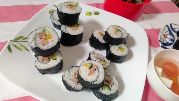 お母さんと娘で一緒に作る海苔巻きです。ワイワイ楽しみながら親子のコミュニケーション料理です。