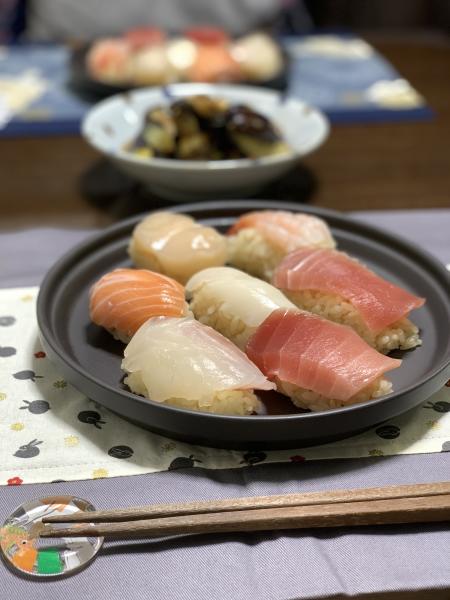 お祝いの日に初めてお寿司を握りました。 不器用な私でも予想以上の仕上がりに自画自賛してしまいました(^ ^)!副菜の茄子のマリネと一緒に、今度は母にも食べてもらいたいです。