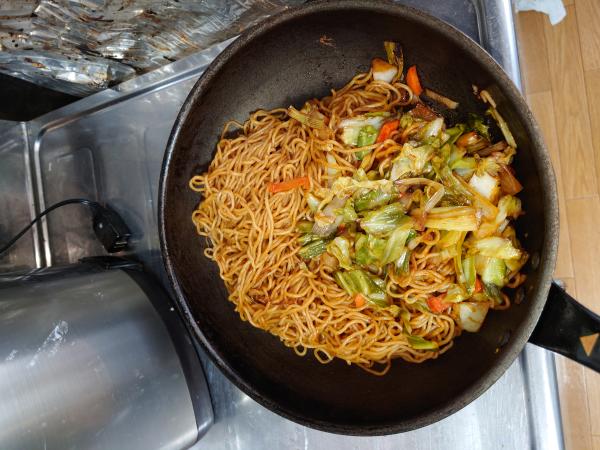 飾り気はないが、家族みんなが大好きな定番の焼きそばでワイワイ!!
